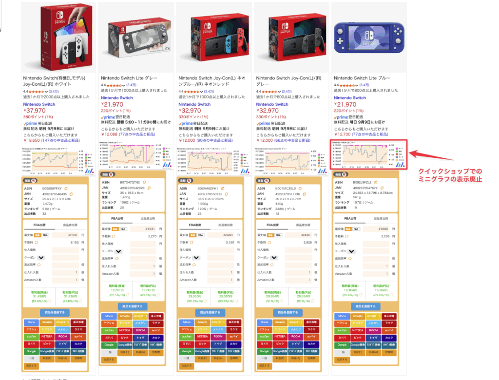 この度、クイックショップでのMonoTracerミニグラフの表示を廃止することとなりました。