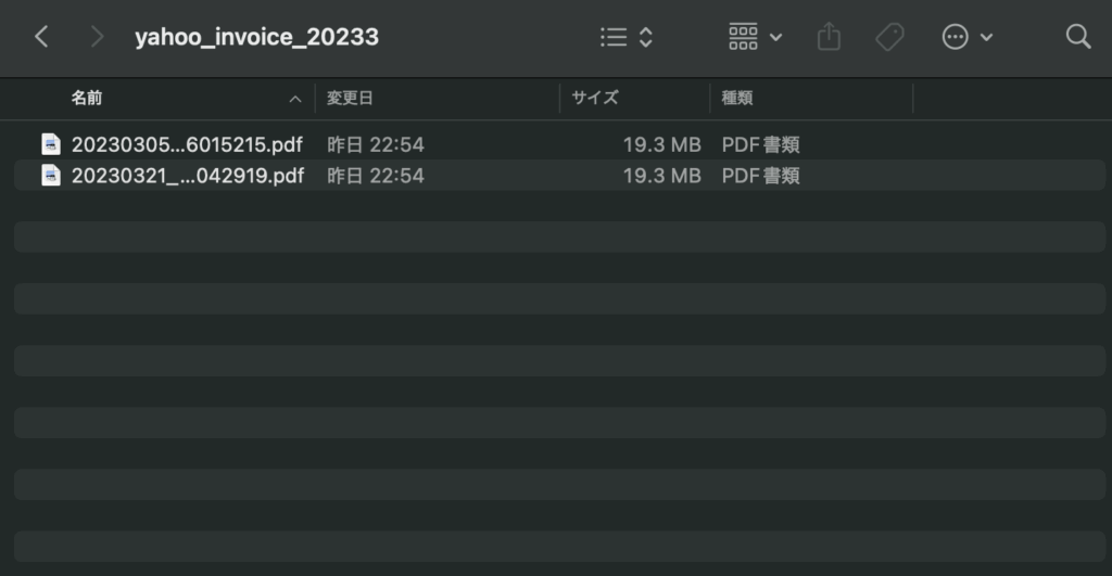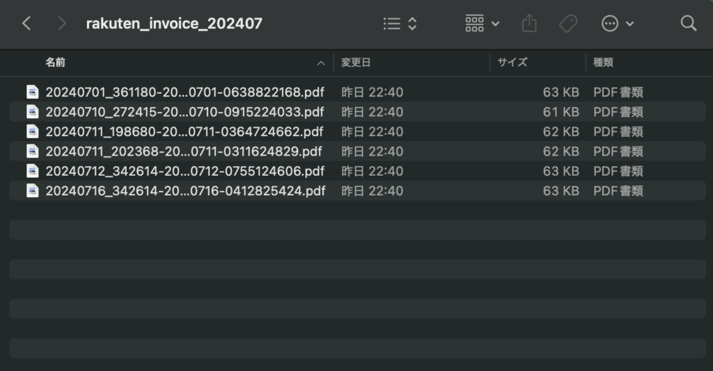 最後に、「支払い明細書ダウンロード」ボタンをクリックすると、選択した条件に基づいて明細書が一括でダウンロードされます。