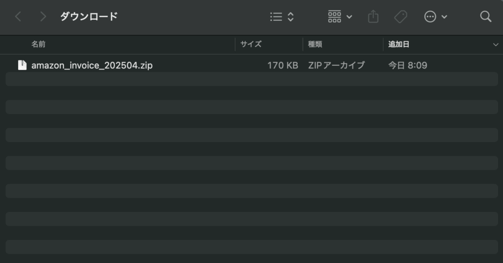 ダウンロード後は他モールと同様、ダウンロードフォルダにzipファイルがダウンロードされます。