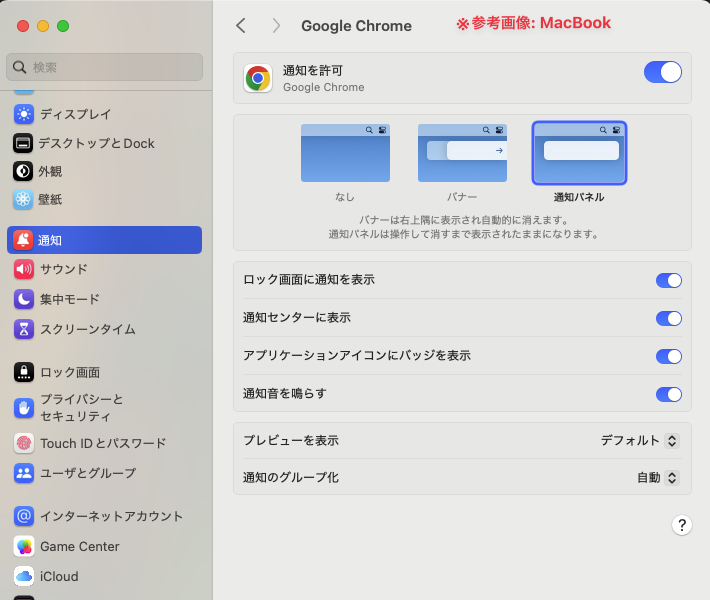 楽天でご利用する場合、PCの設定でGoogle Chromeの通知をオンにしておく必要があります。